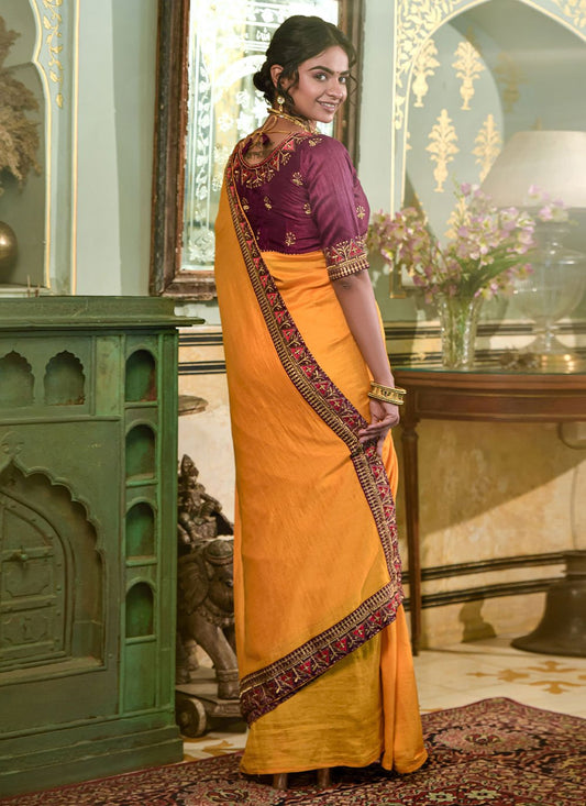 Contemporary Crepe Silk Magenta Embroidered Saree
