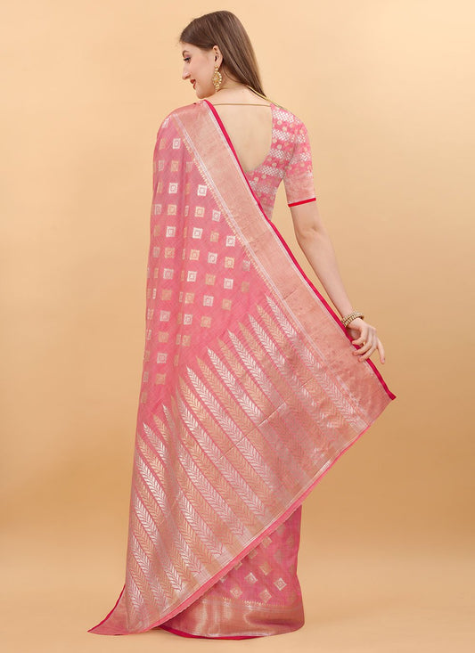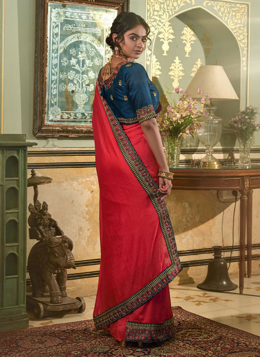 Contemporary Vichitra Silk Pink Embroidered Saree