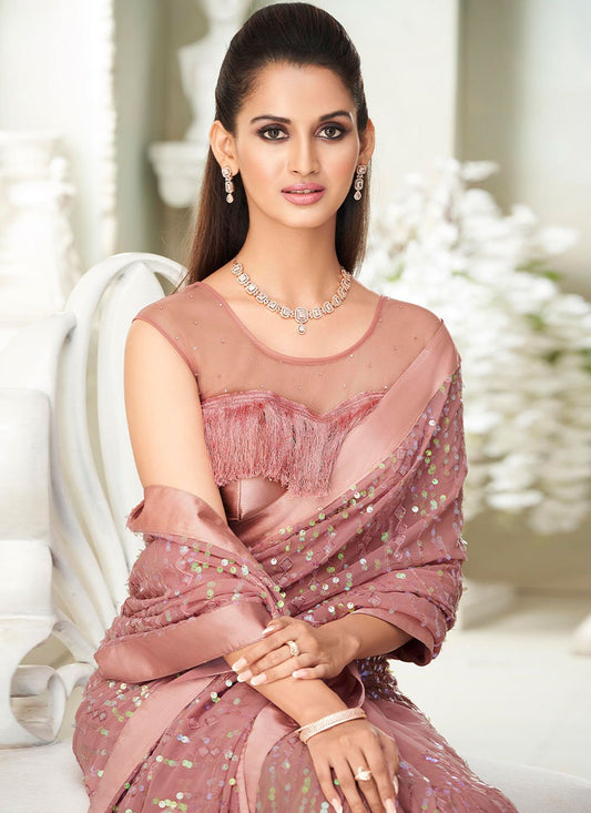 Trendy Saree Net Pink Embroidered Saree