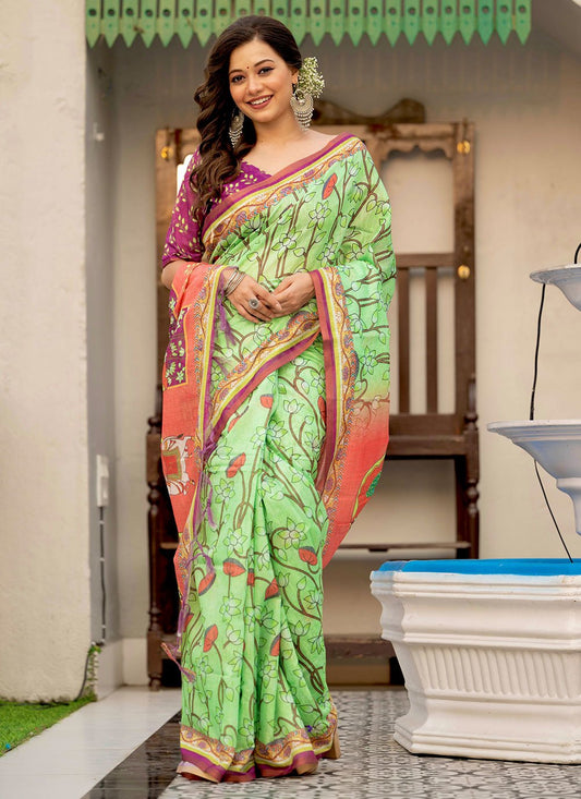 Classic Linen Green Digital Print Saree