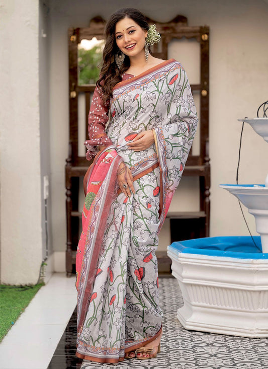 Trendy Saree Linen Grey Digital Print