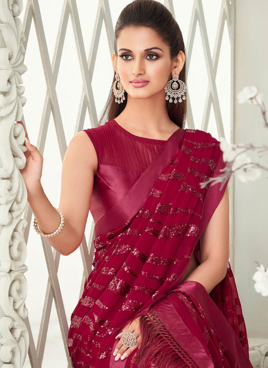 Contemporary Georgette Red Fancy Work Saree