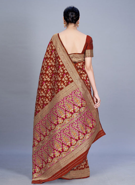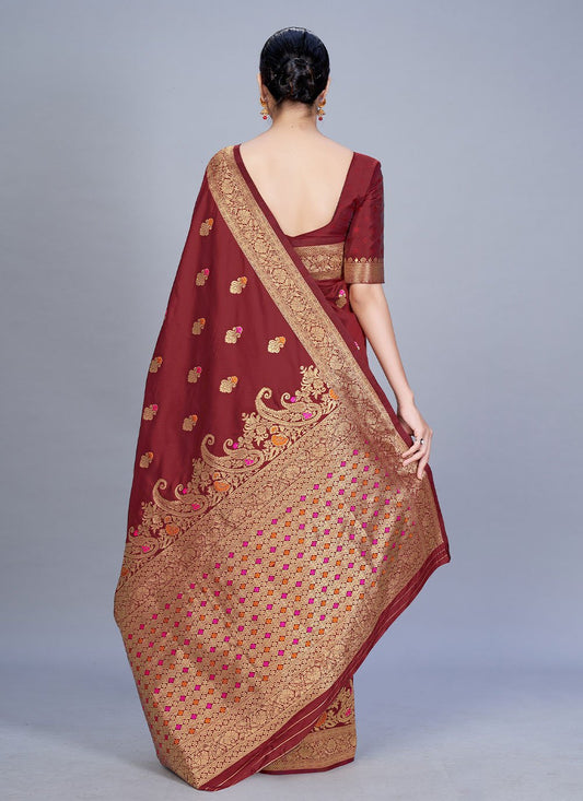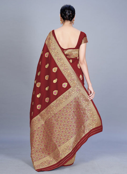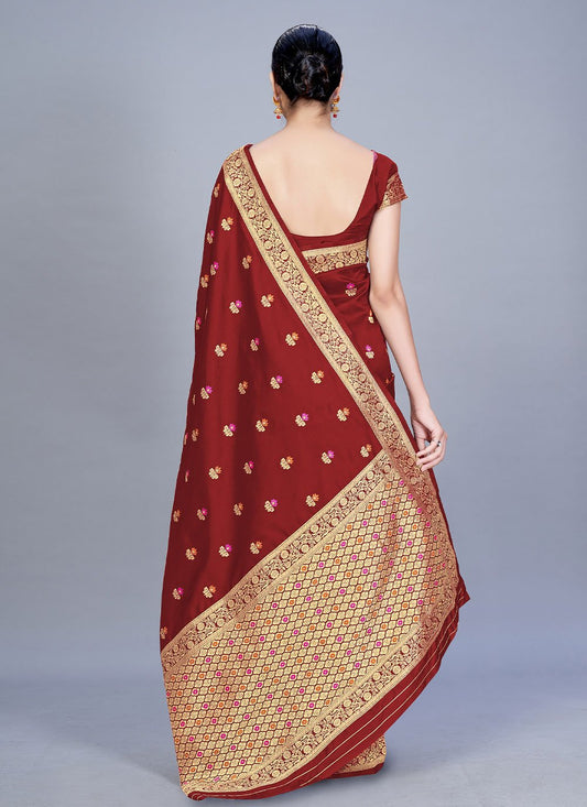 Contemporary Banarasi Silk Maroon Woven Saree