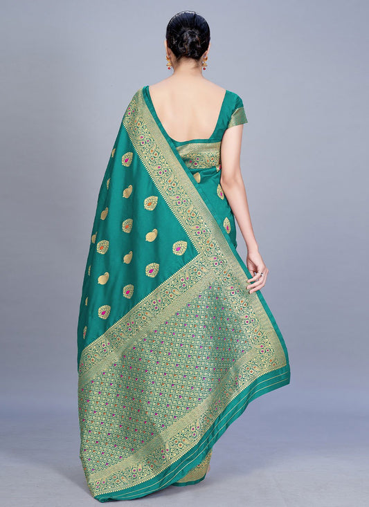 Trendy Saree Banarasi Silk Sea Green
