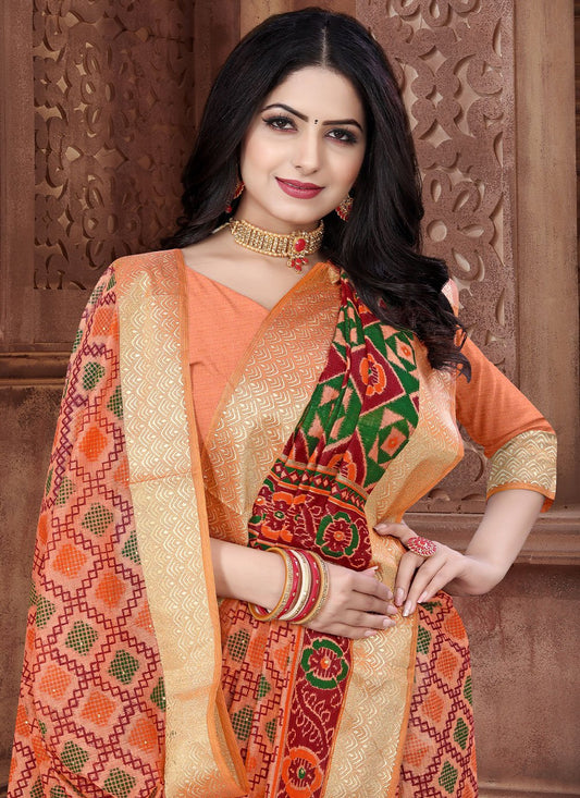 Classic Cotton Peach Print Saree