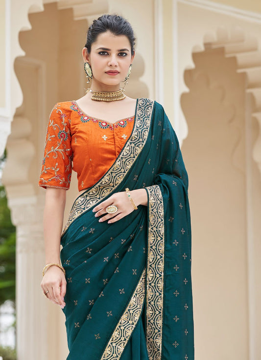 Classic Vichitra Silk Teal Dori Work