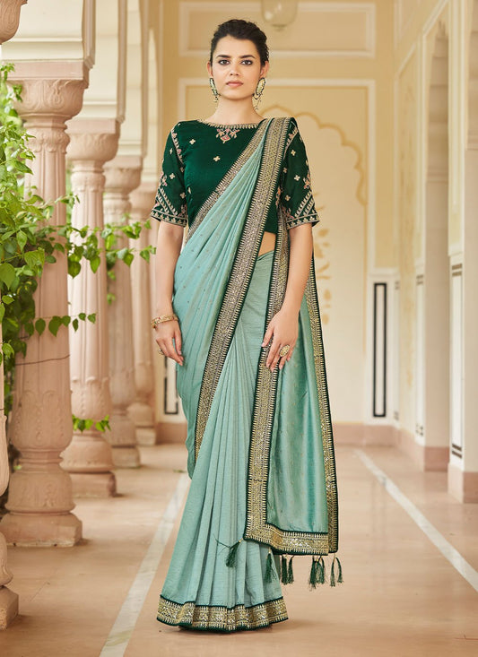 Trendy Saree Vichitra Silk Sea Green