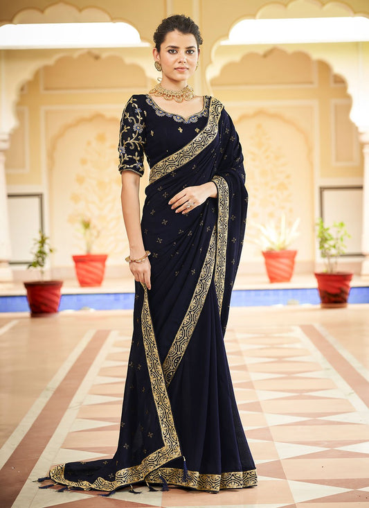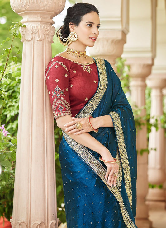 Classic Vichitra Silk Blue Dori Work