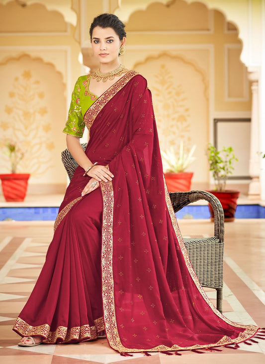 Contemporary Vichitra Silk Red Dori Work