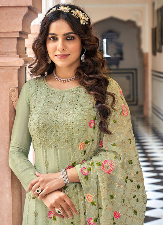 Palazzo Salwar Suit Georgette Green Embroidered