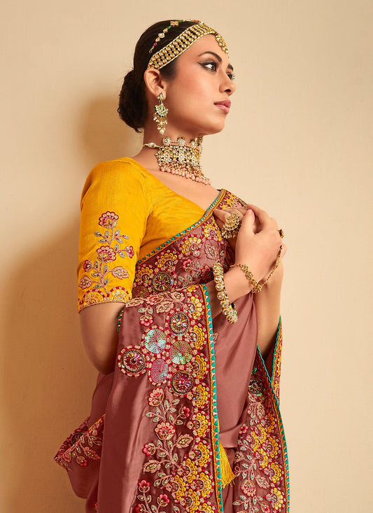 Contemporary Silk Mustard Embroidered Saree