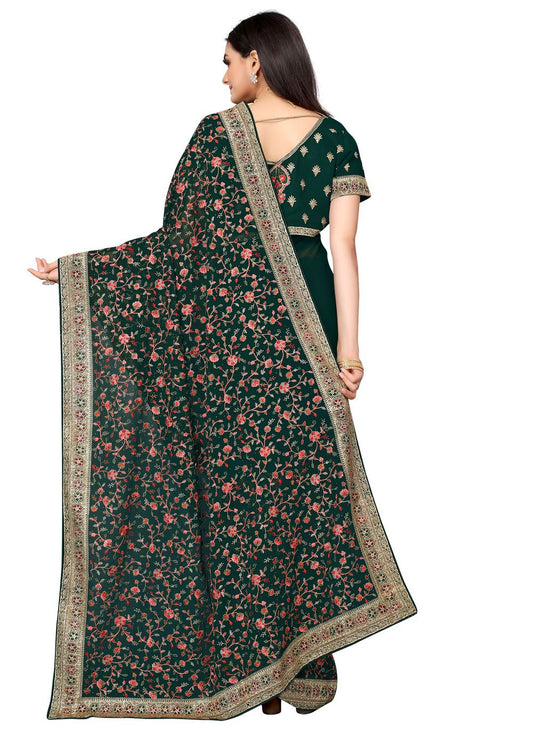 Trendy Saree Georgette Green Embroidered Saree