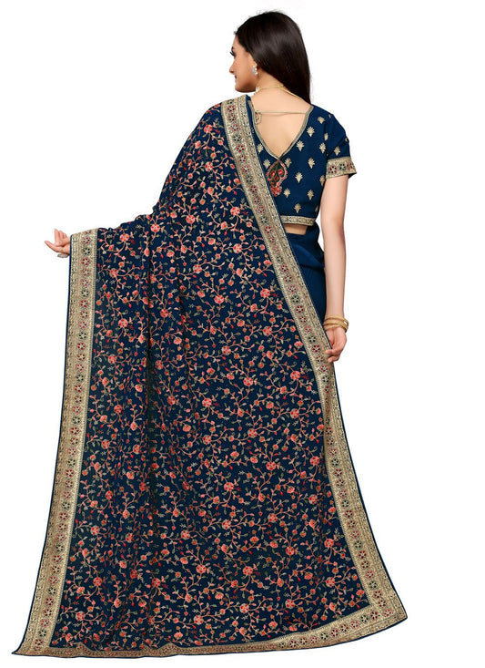 Classic Georgette Teal Embroidered Saree