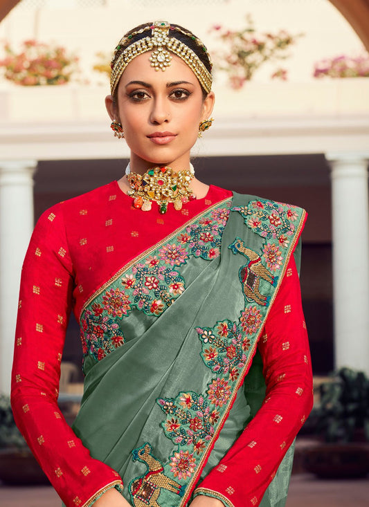 Contemporary Silk Green Embroidered Saree