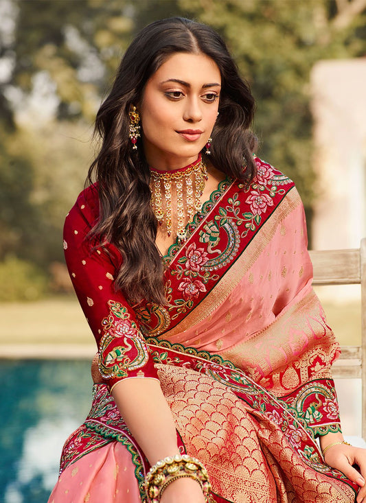 Trendy Saree Silk Pink Embroidered Saree
