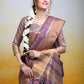 Get going with this majestic and wonderful piece and make your dream attire look richer to your persona. You are sure to make a strong fashion statement with this wine cotton silk contemporary saree. This attire is encrafted with woven and zari work. Comes with matching blouse. (Slight variation in color, fabric & work is possible. Model images are only representative.)
