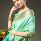 Add a vibrant burst of colour for your wardrobe with this turquoise raw silk contemporary saree. The ethnic border, woven and zari work over a dress adds a sign of elegance statement for your look. Comes with matching blouse. (Slight variation in color, fabric & work is possible. Model images are only representative.)