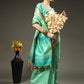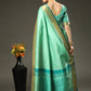 Contemporary Raw Silk Turquoise Patch Border Saree