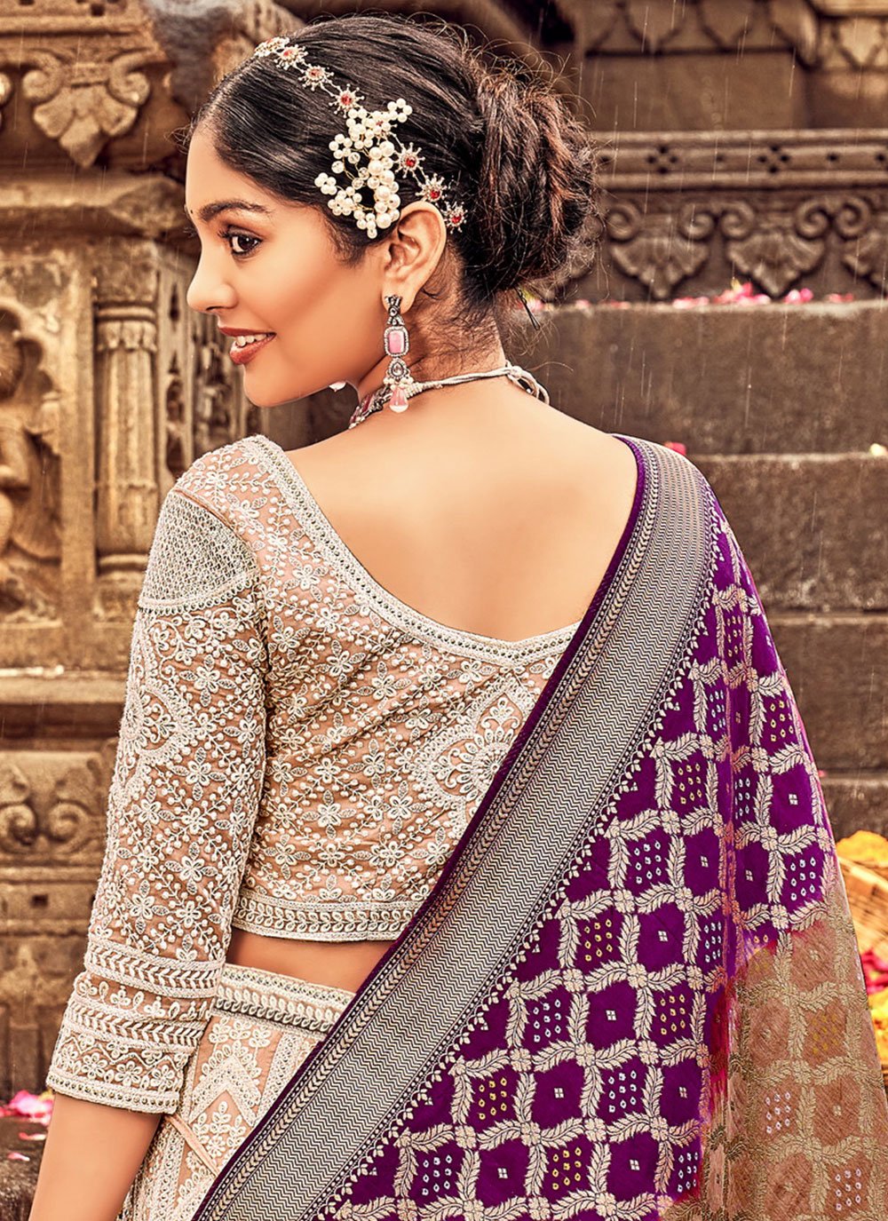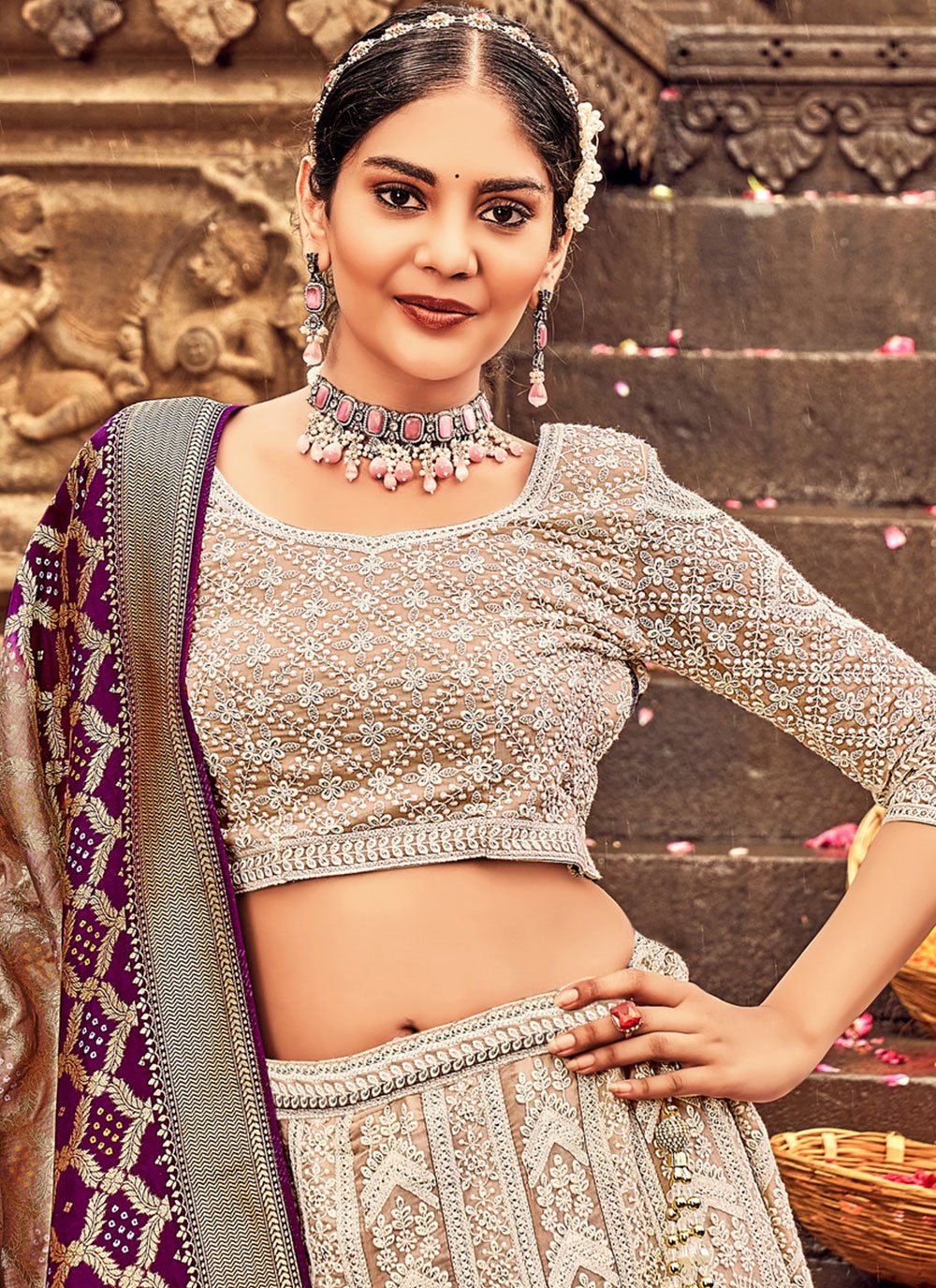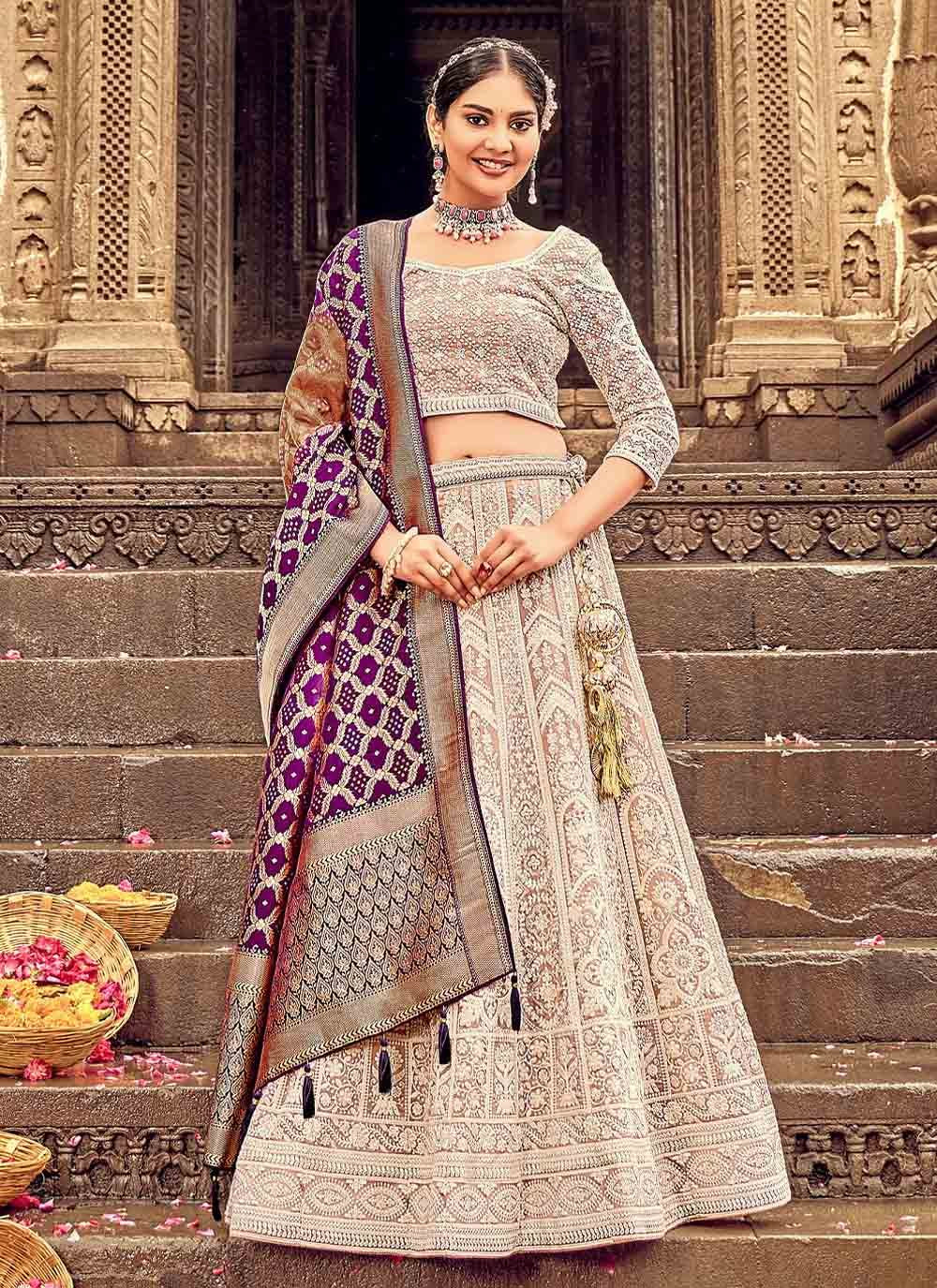 Genuine magnificence comes out from your dressing style and design with this cream georgette a line lehenga choli. The ethnic embroidered and lucknowi work work with the dress adds a sign of beauty statement with your look. Comes with matching choli and dupatta. (Slight variation in color, fabric & work is possible. Model images are only representative.)