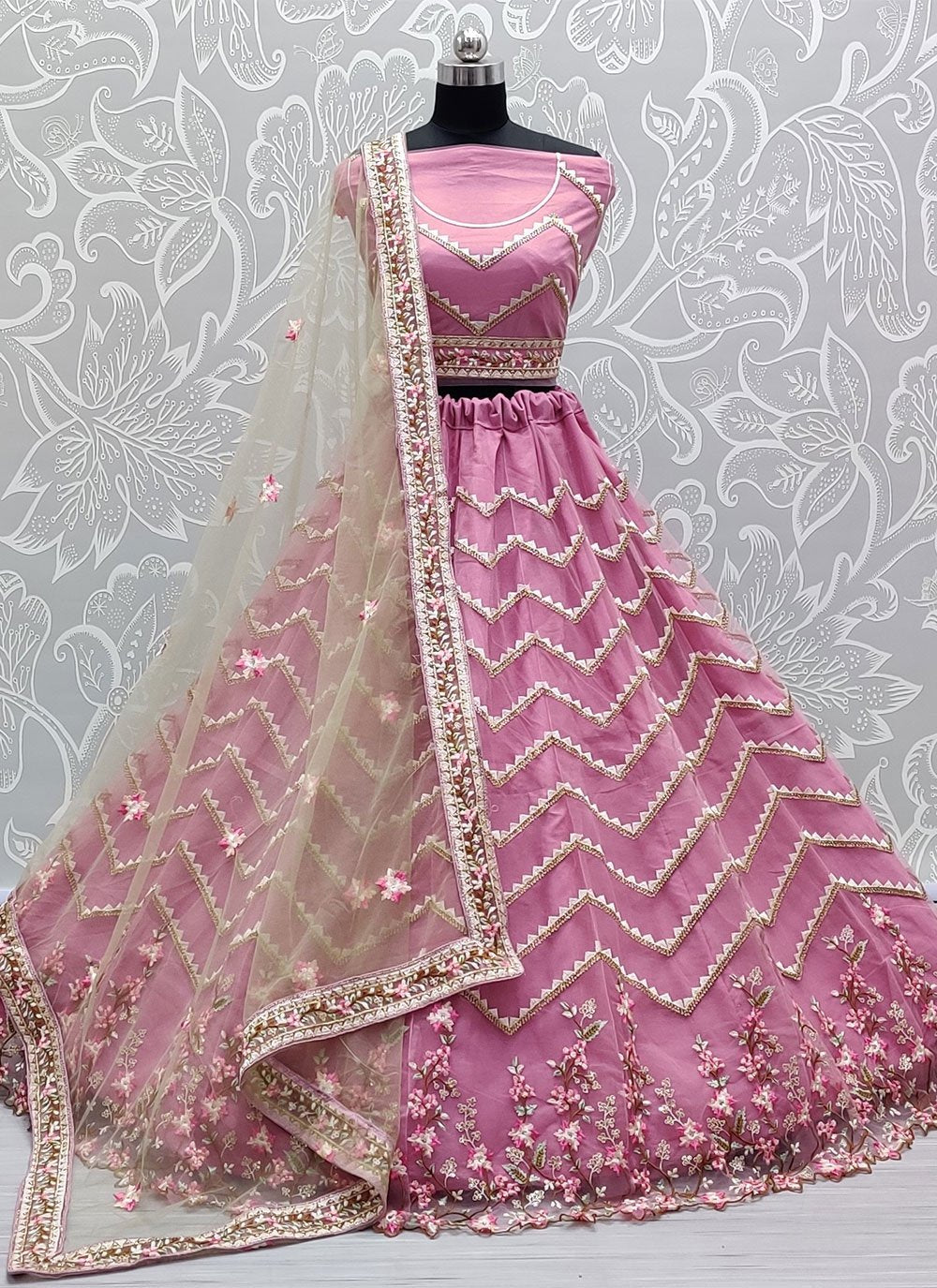A Line Lehenga Net Pink Diamond Lehenga Choli