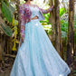 A Line Lehenga Organza Aqua Blue Embroidered Lehenga Choli