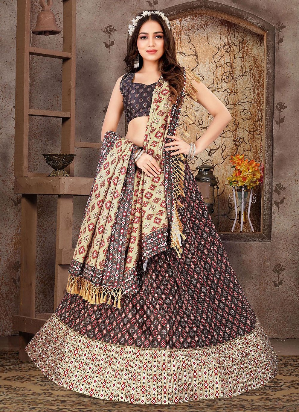 A Line Lehenga Satin Silk Wine Print Lehenga Choli