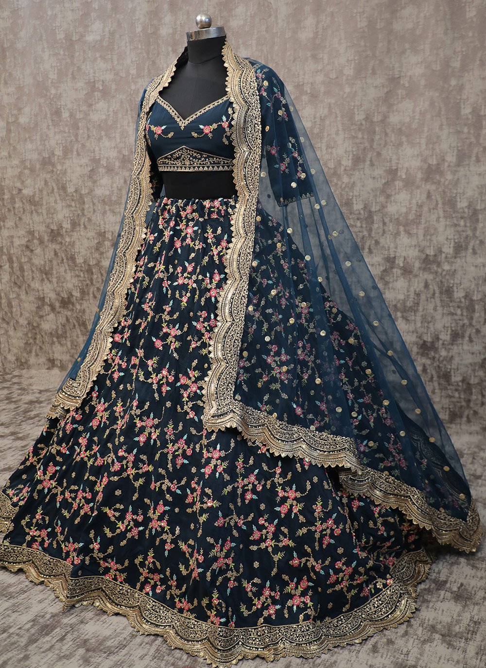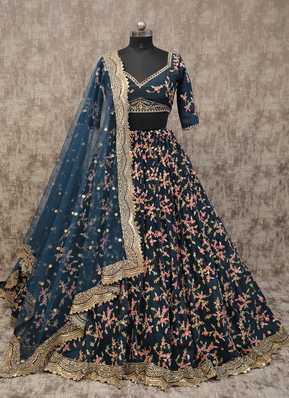 A Line Lehenga Silk Blue Embroidered Lehenga Choli