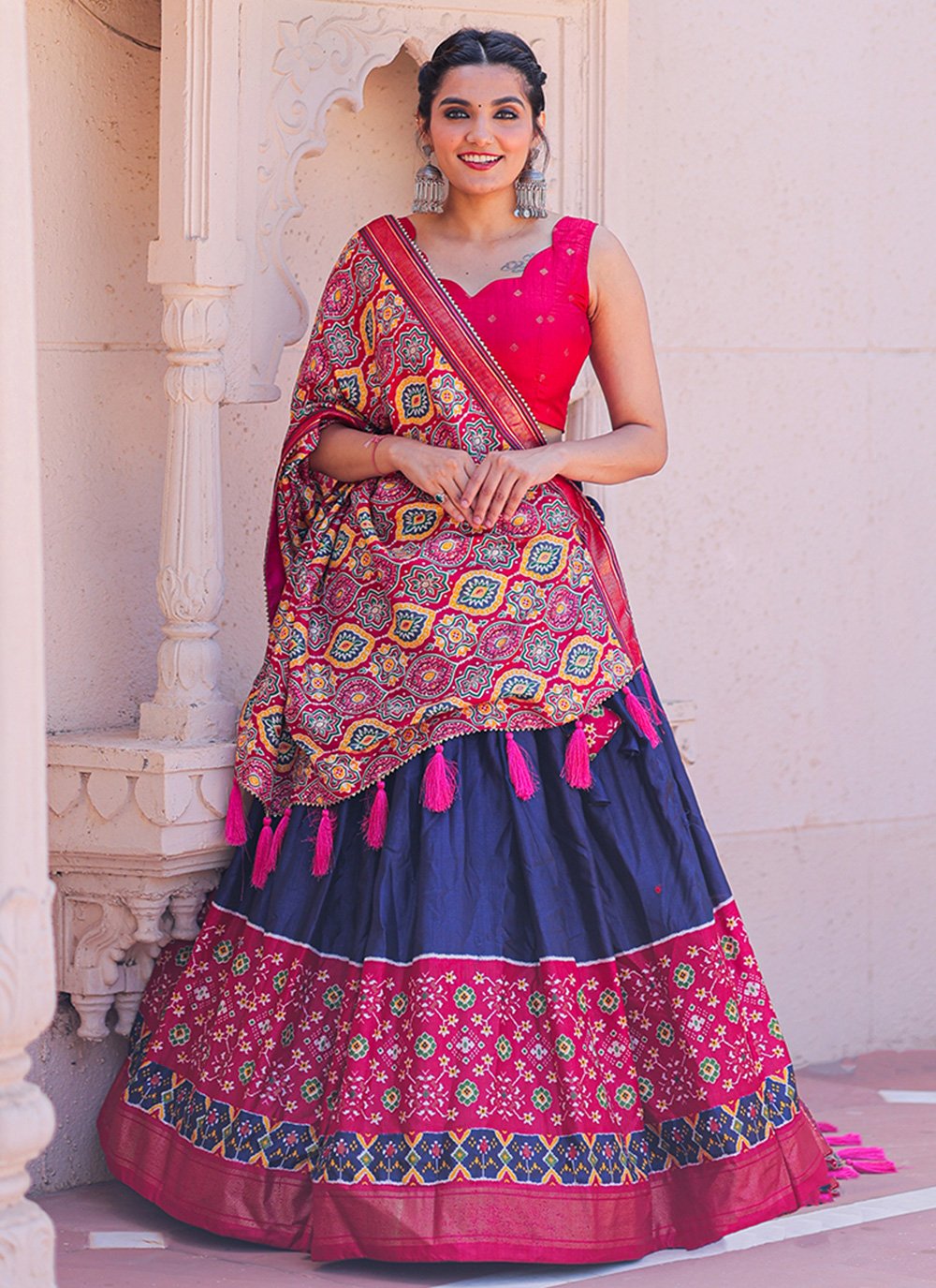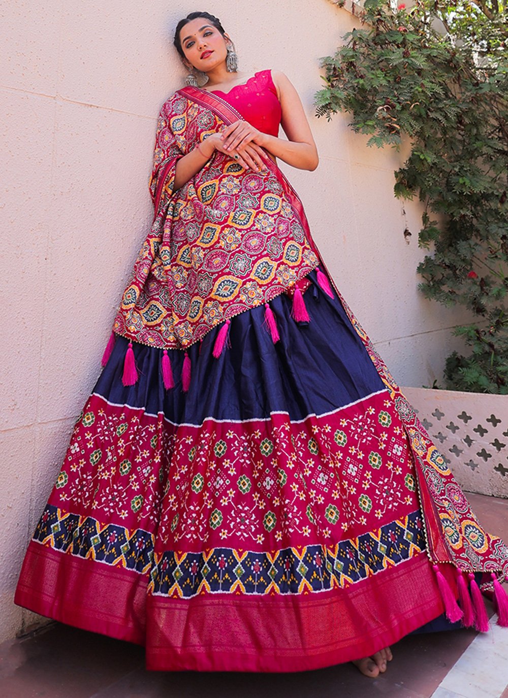 A Line Lehenga Silk Blue Pink Foil Print Lehenga Choli
