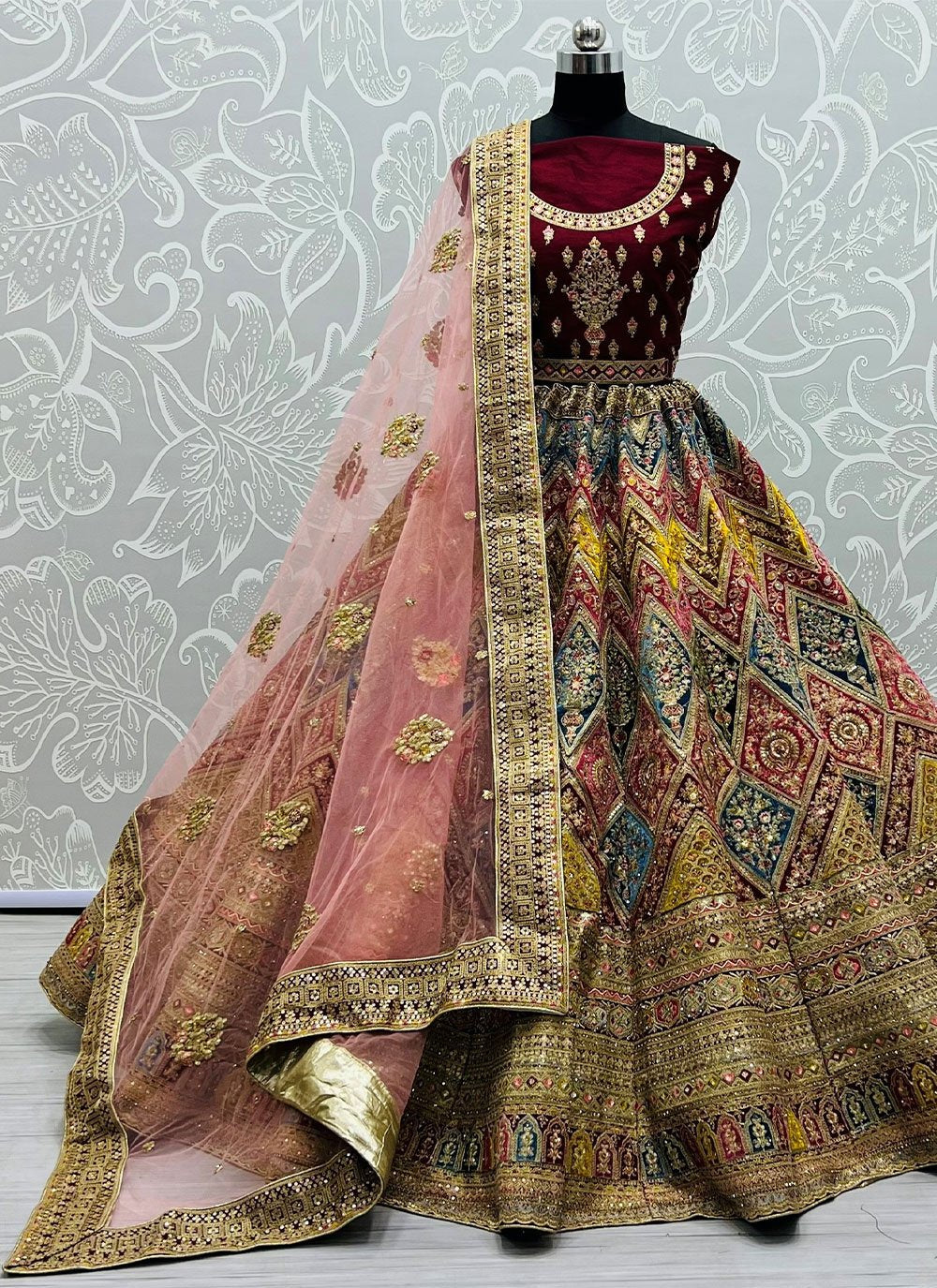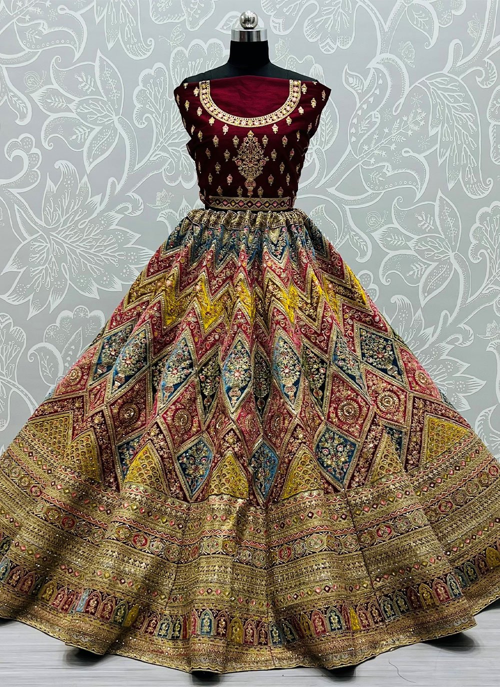 Be the sunshine of anyone’s eyes dressed with this lovely maroon silk a line lehenga choli. The sequins and thread work appears to be like chic and ideally suited for any occasion. Comes with matching choli and dupatta. (Slight variation in color, fabric & work is possible. Model images are only representative.)