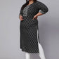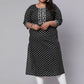 This black cotton casual kurti is including the appealing glamorous showing the feel of cute and graceful. The ethnic printed work over a attire adds a sign of splendor statement for the look. (Slight variation in color, fabric & work is possible. Model images are only representative.)