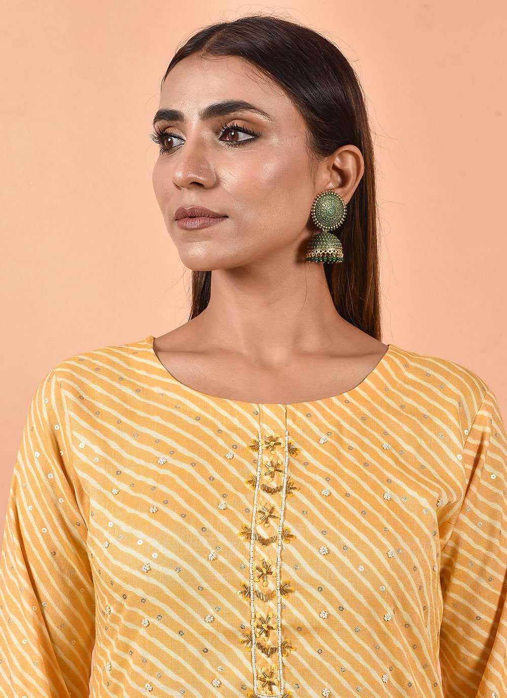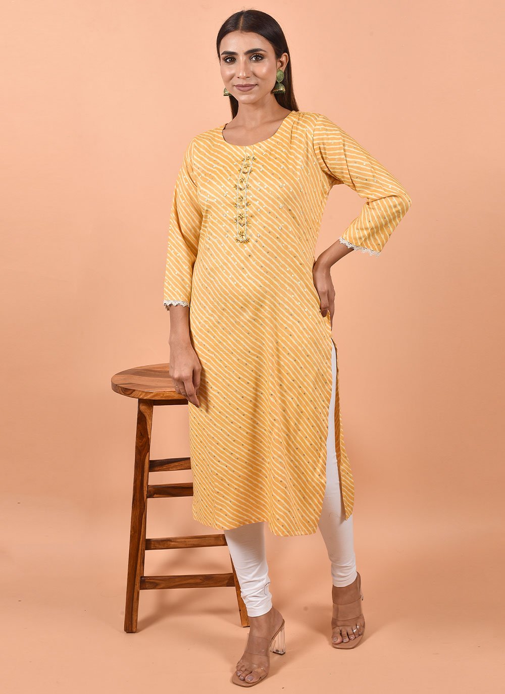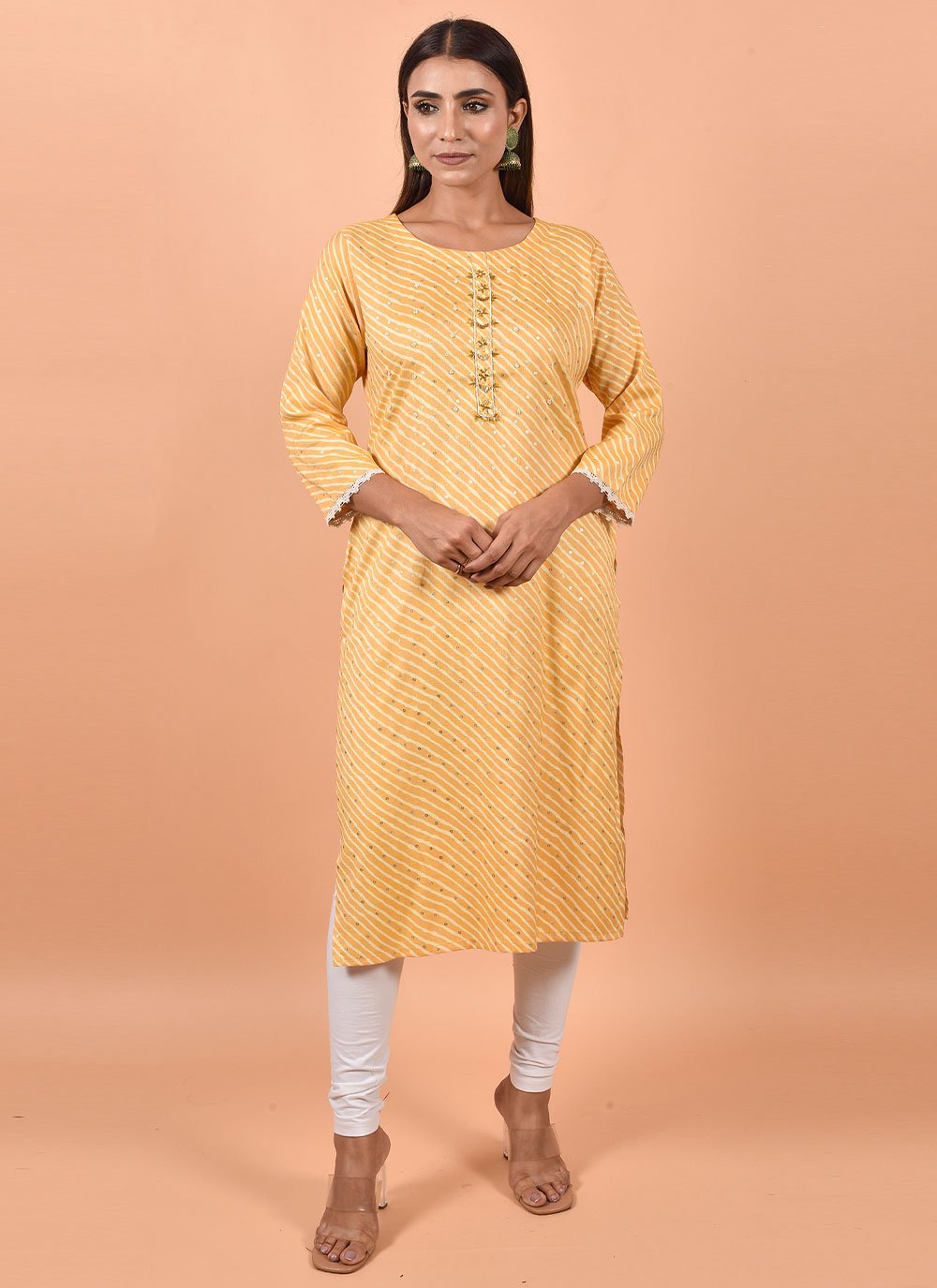 Be the sunshine of anyone’s eyes dressed in this mustard cotton casual kurti. It has been beautifully designed with printed work. (Slight variation in color, fabric & work is possible. Model images are only representative.)