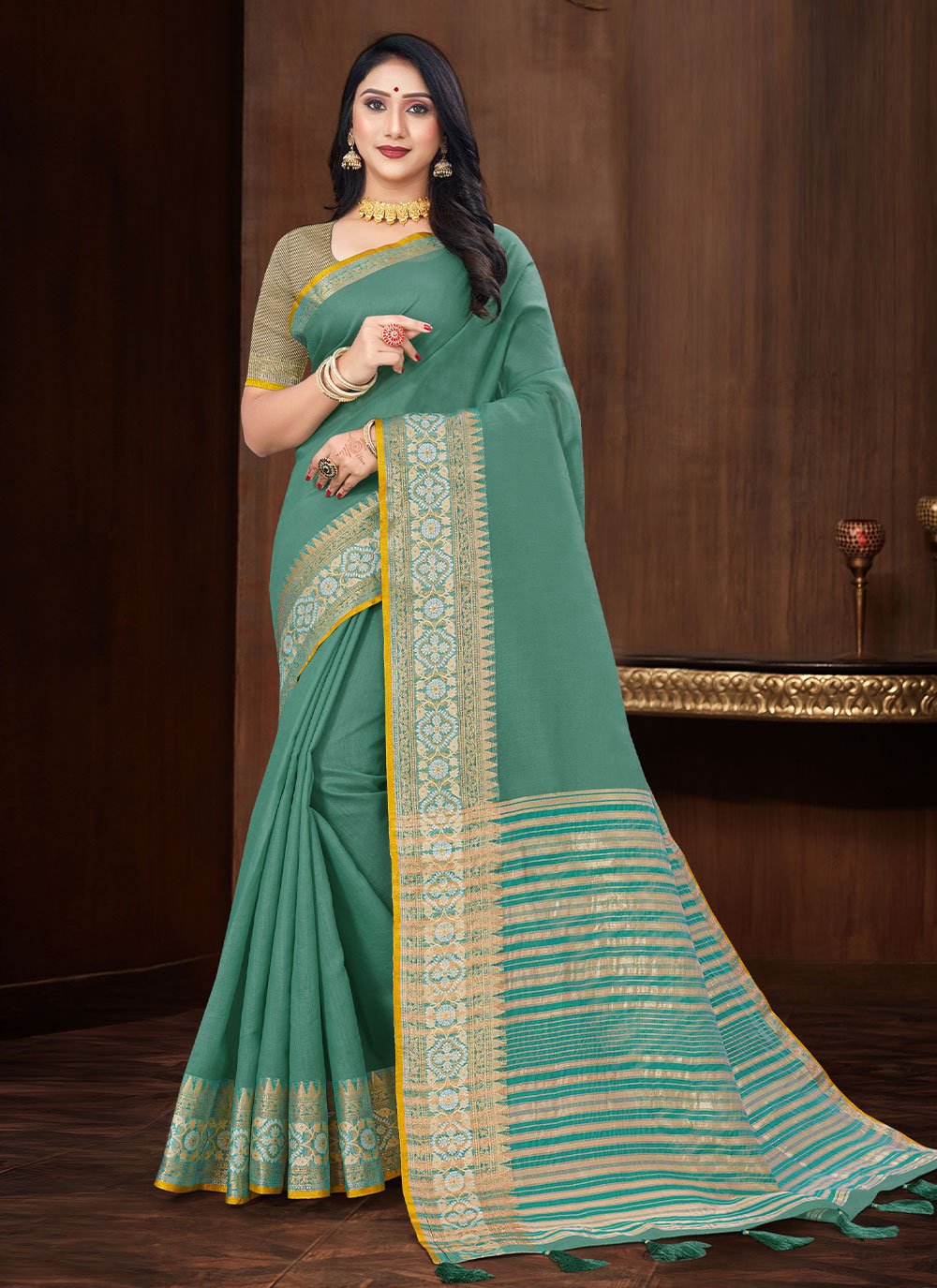 Fashion and pattern would be at the peak of your attractiveness after you dresses this green art silk classic saree. The ethnic border work in the attire adds a sign of beauty statement for your look. Comes with matching blouse. (Slight variation in color, fabric & work is possible. Model images are only representative.)