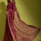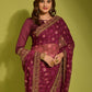 Classic Chiffon Georgette Wine Embroidered Saree