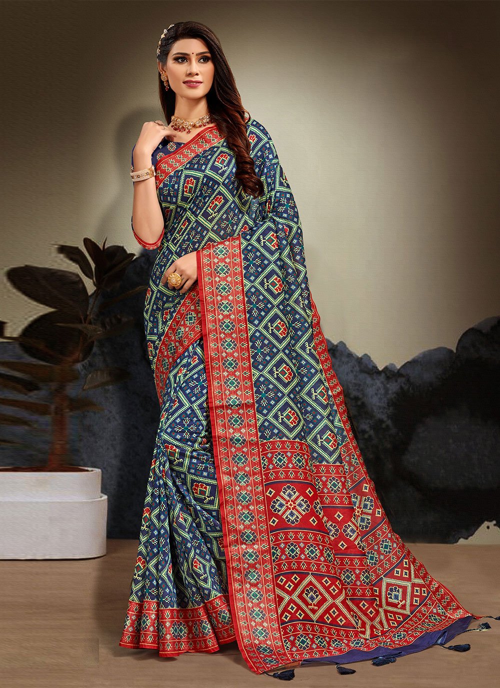 Famous designers tend to give reign to their imagination and create clothes that look interesting and guided by the desire to attract attention. Be ready to slip in the comfort zone of blue cotton classic saree. It is uniquely crafted with printed work. Comes with matching blouse. (Slight variation in color, fabric & work is possible. Model images are only representative.)