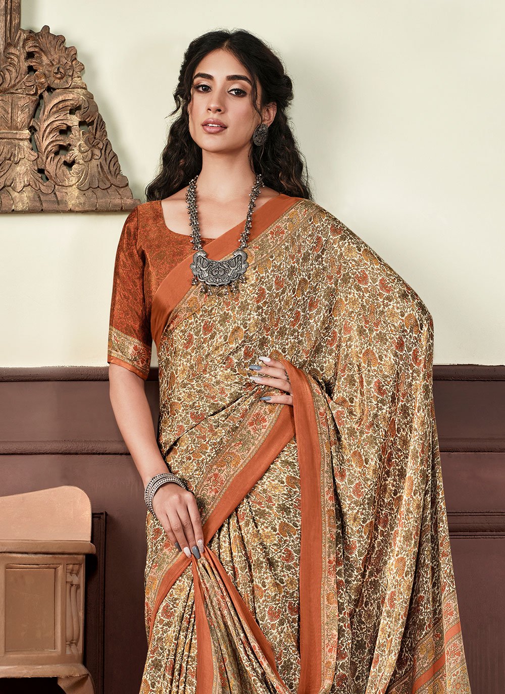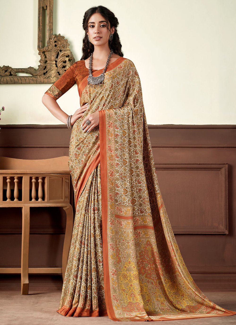 Make the heads flip whenever you costume up in this kind of a lovely beige crepe silk classic saree. The incredible attire creates a dramatic canvas with astounding printed work. Comes with matching blouse. (Slight variation in color, fabric & work is possible. Model images are only representative.)
