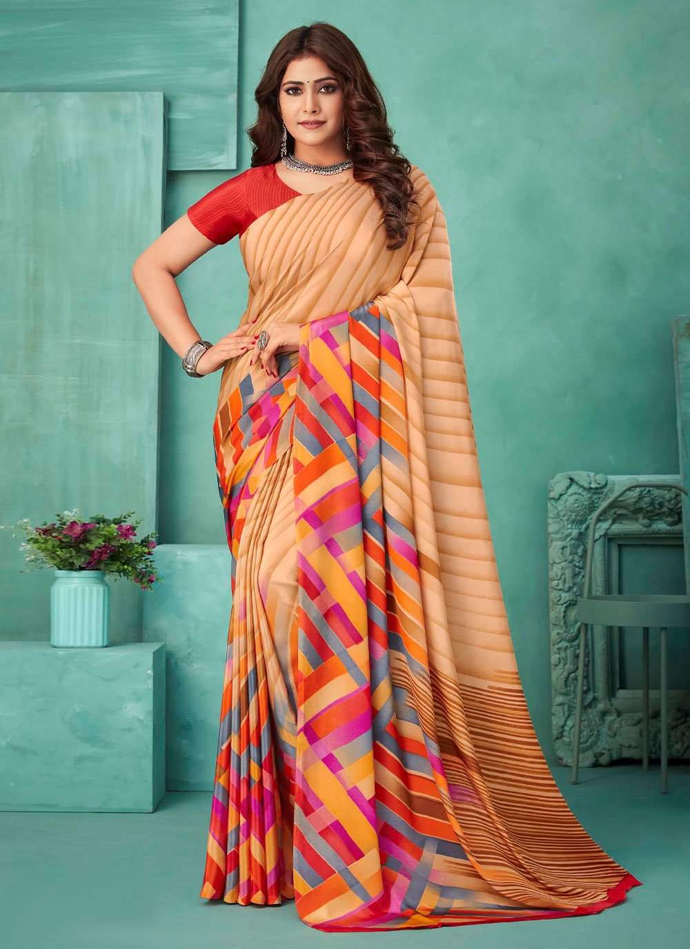 Classic Crepe Silk Orange Print Saree