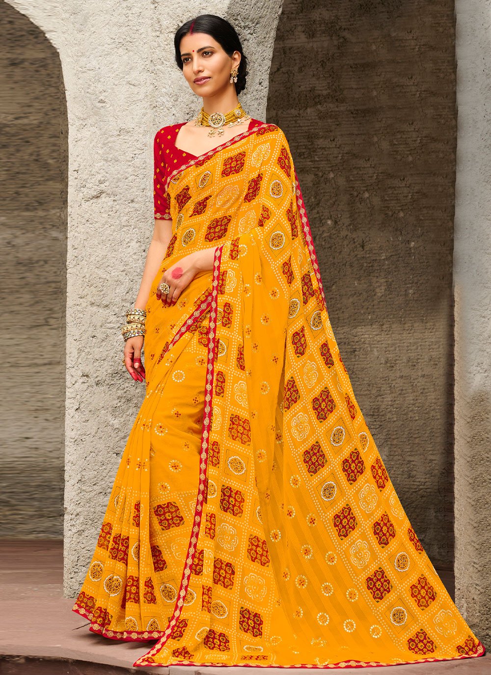 Classic Georgette Mustard Print Saree
