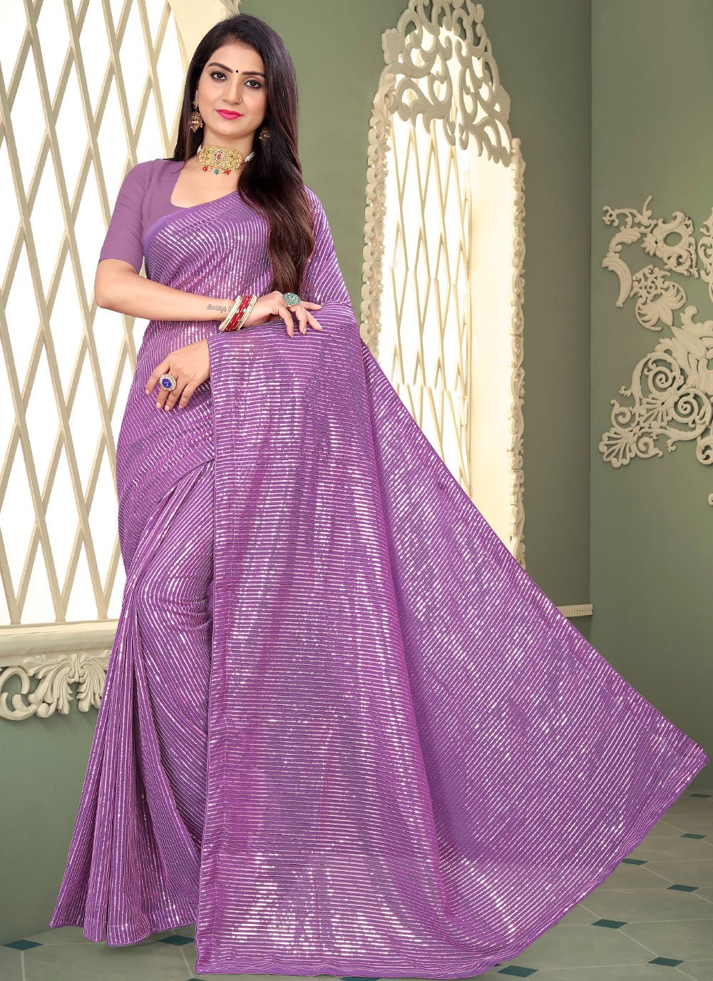 Designed with simplicity with a touch of soberness in its work makes a masterpiece. Add grace and charm to your appearance in this beautiful purple georgette saree. You can see some fascinating patterns done with sequins work. Comes with matching blouse. (Slight variation in color, fabric & work is possible. Model images are only representative.)