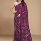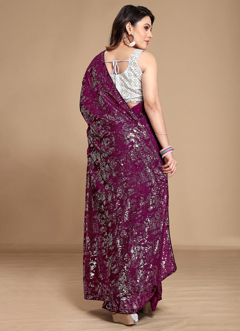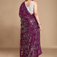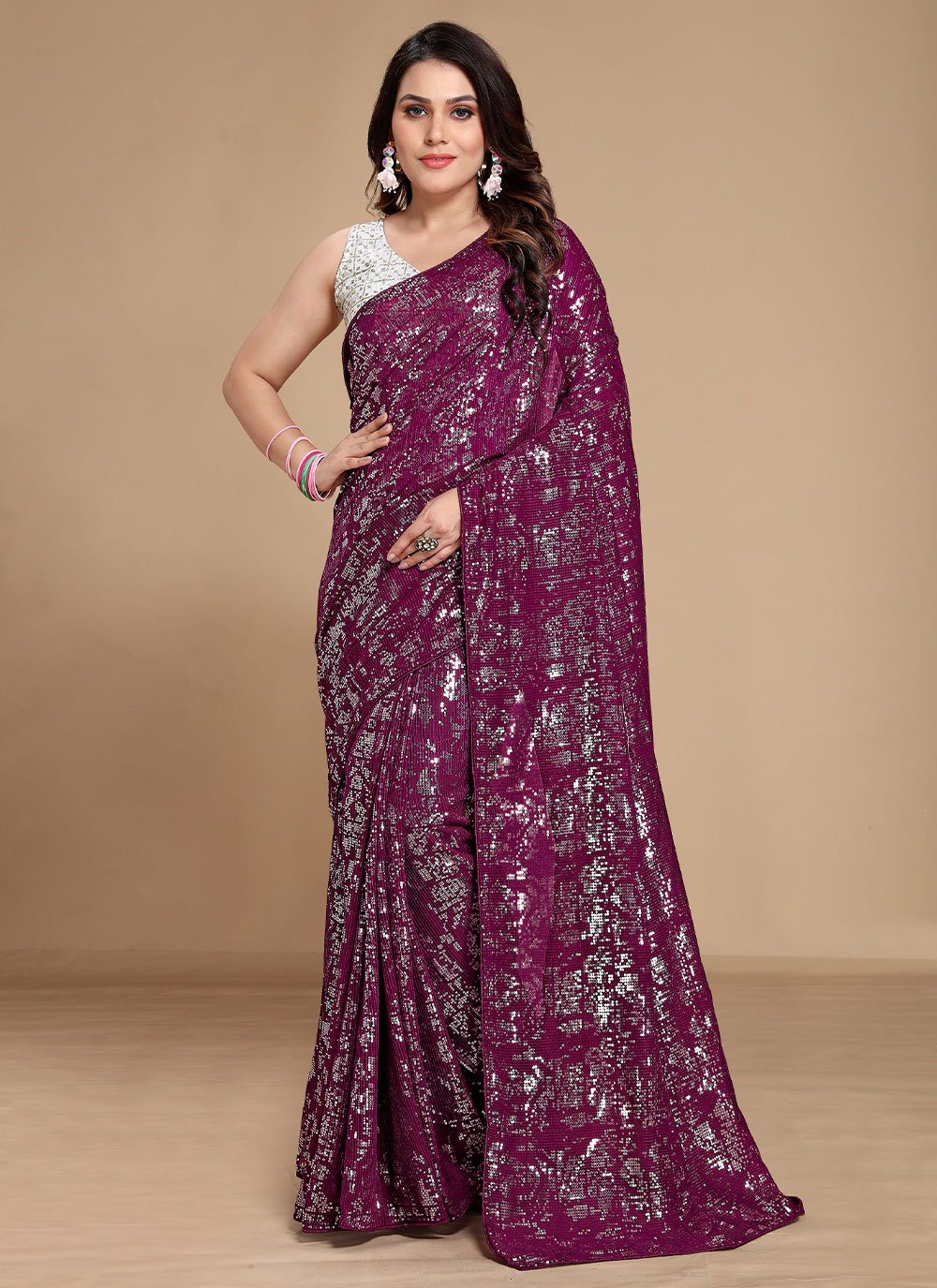 We unfurl our the intricacy and exclusivity of our creations highlighted in such a lovely wine georgette classic saree.. The attractive sequins work all through the attire is awe inspiring. Comes with matching blouse. (Slight variation in color, fabric & work is possible. Model images are only representative.)