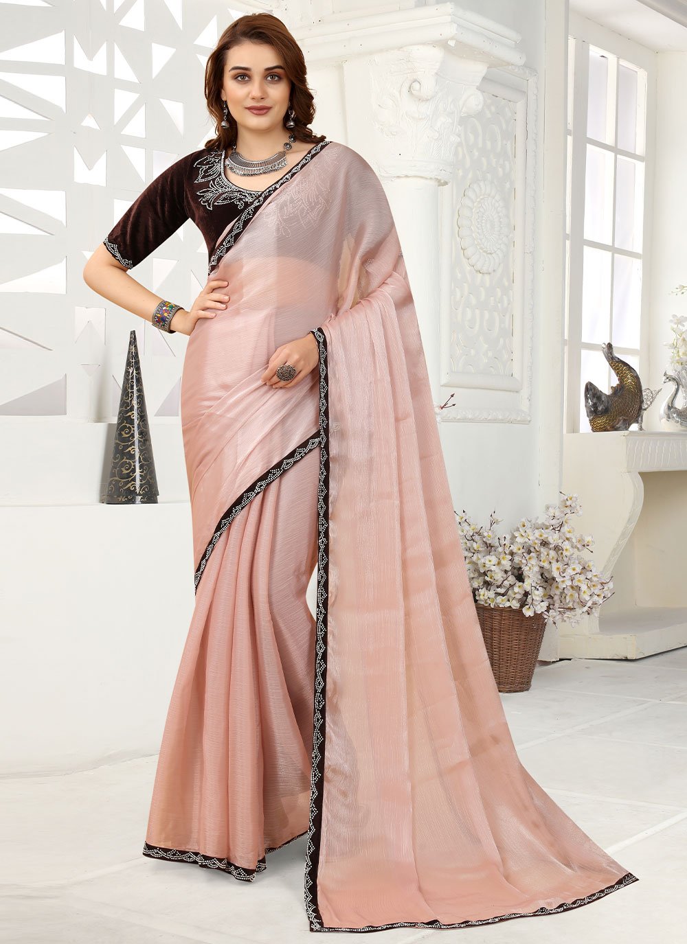 Classic Organza Pink Lace Saree