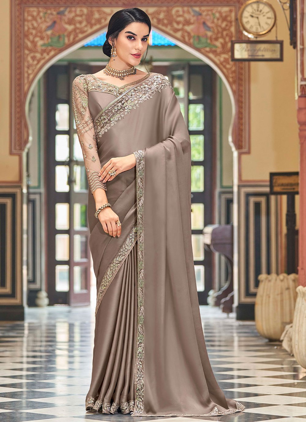 You will be confident to make a strong fashion statement with this brown silk classic saree. Beautified with embroidered and resham work all synchronized effectively with the design and style and design of the attire. Comes with matching blouse. (Slight variation in color, fabric & work is possible. Model images are only representative.)