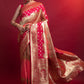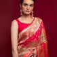 Enchant the mantra of being stylish in this attire. This pink silk classic saree is accenting the gorgeous feeling. This attire is showing some really mesmerizing and innovative patterns embroidered with weaving work. Comes with matching blouse. (Slight variation in color, fabric & work is possible. Model images are only representative.)