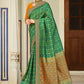 Make the heads turn when you costume up in this kind of a pretty green banarasi silk contemporary saree. The weaving work seems chic and great for any get together. Comes with matching blouse. (Slight variation in color, fabric & work is possible. Model images are only representative.)