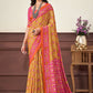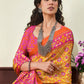 Get going with this majestic and wonderful piece and make your dream attire look richer to your persona. You are sure to make a strong fashion statement with this yellow crepe silk contemporary style saree. This attire is encrafted with printed work. Comes with matching blouse. (Slight variation in color, fabric & work is possible. Model images are only representative.)