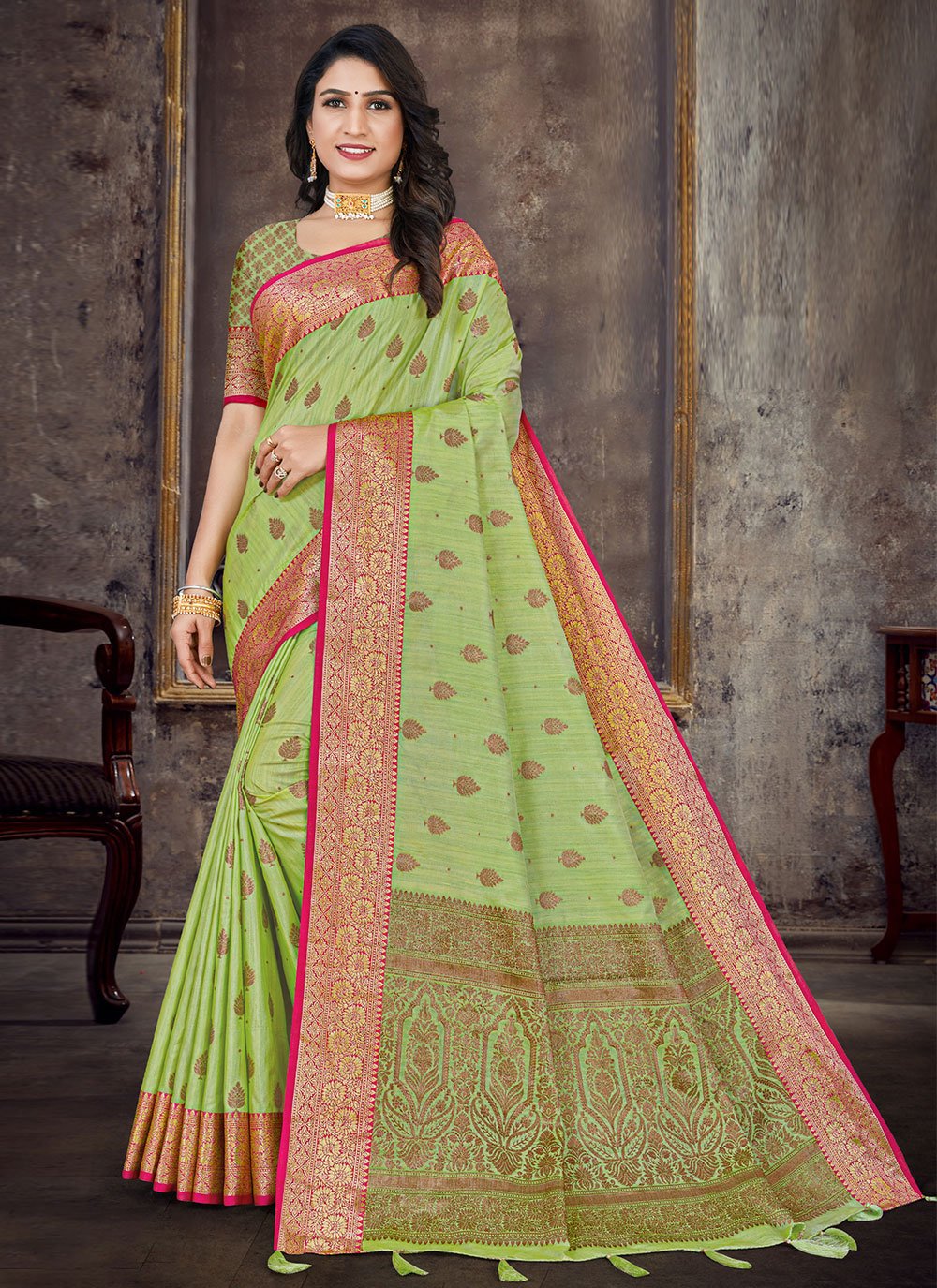 Contemporary Silk Green Weaving Saree