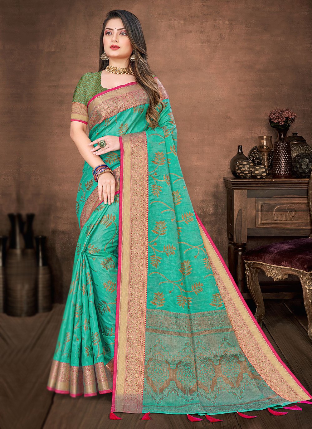 Design and pattern will be on the peak of your magnificence when you attire this sea green silk contemporary saree. The ethnic fancy work in the dress adds a sign of splendor statement with your look. Comes with matching blouse. (Slight variation in color, fabric & work is possible. Model images are only representative.)