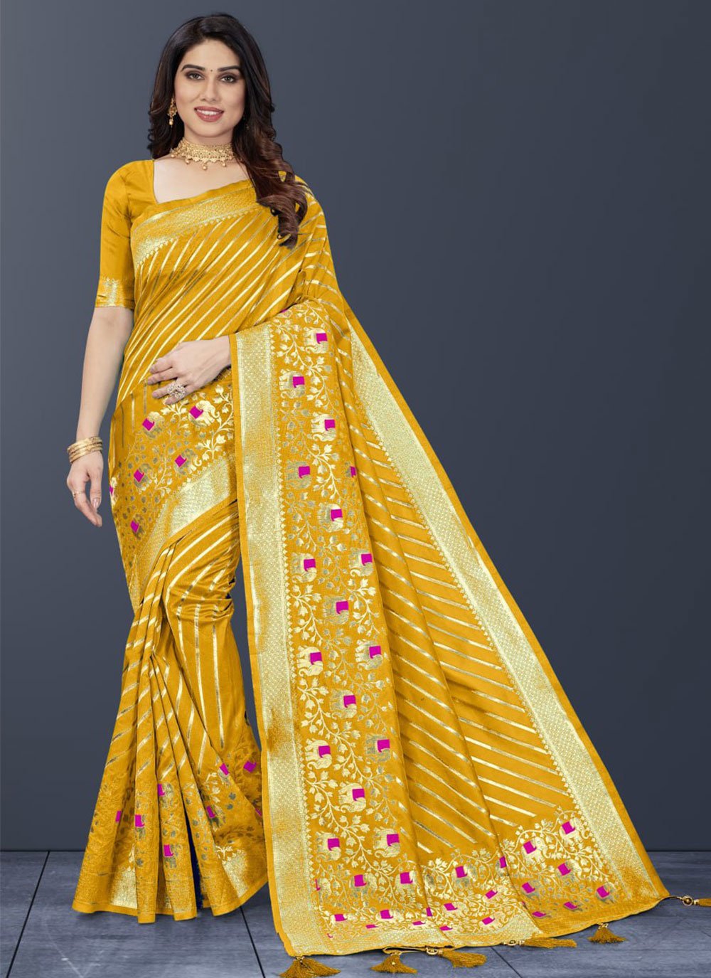 Contemporary Silk Yellow Jacquard Work Saree