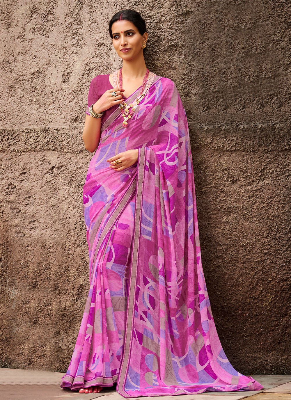 This purple georgette designer saree is accenting the charming feeling. The printed work appears to be chic and fantastic for any function. Comes with matching blouse. (Slight variation in color, fabric & work is possible. Model images are only representative.)