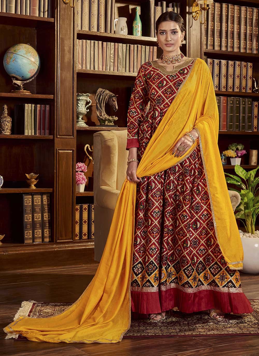 Designer Gown Cotton Maroon Print Gown