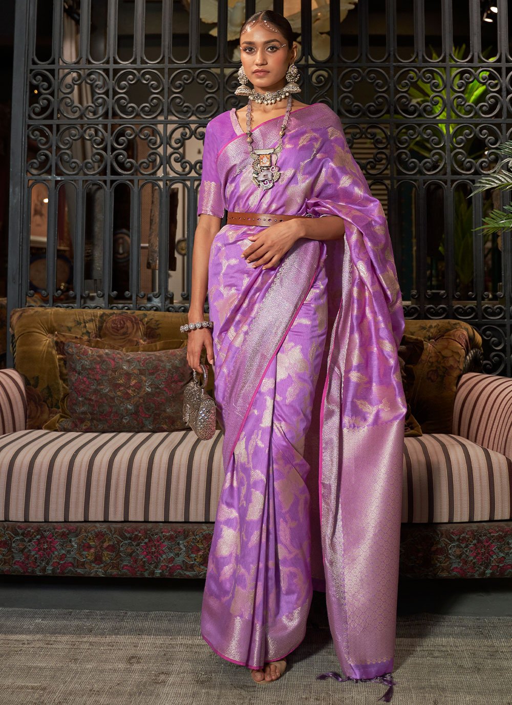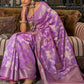 Genuine magnificence will come out through the dressing style with this purple handloom silk designer saree. The weaving work looks chic and aspiration for any function. Comes with matching blouse. (Slight variation in color, fabric & work is possible. Model images are only representative.)
